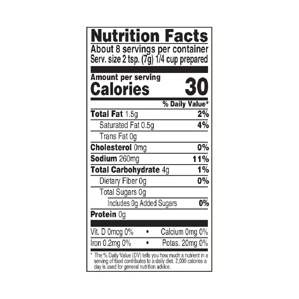 FOOD STARCH-MODIFIED, WHEAT FLOUR, PALM OIL, MALTODEXTRIN, SALT, CORN SYRUP SOLIDS, HYDROLYZED VEGETABLE PROTEIN (CORN, SOY, AND/OR WHEAT), CONTAINS LESS THAN 2% OF: NATURAL FLAVORS, YEAST EXTRACT, SUGAR, WHEY PROTEIN CONCENTRATE, TEXTURED VEGETABLE PROTEIN (SOY, CARAMEL COLOR), COLOR ADDED, SODIUM CASEINATE, MONO & DIGLYCERIDES, DISODIUM GUANYLATE, DISODIUM INOSINATE.
